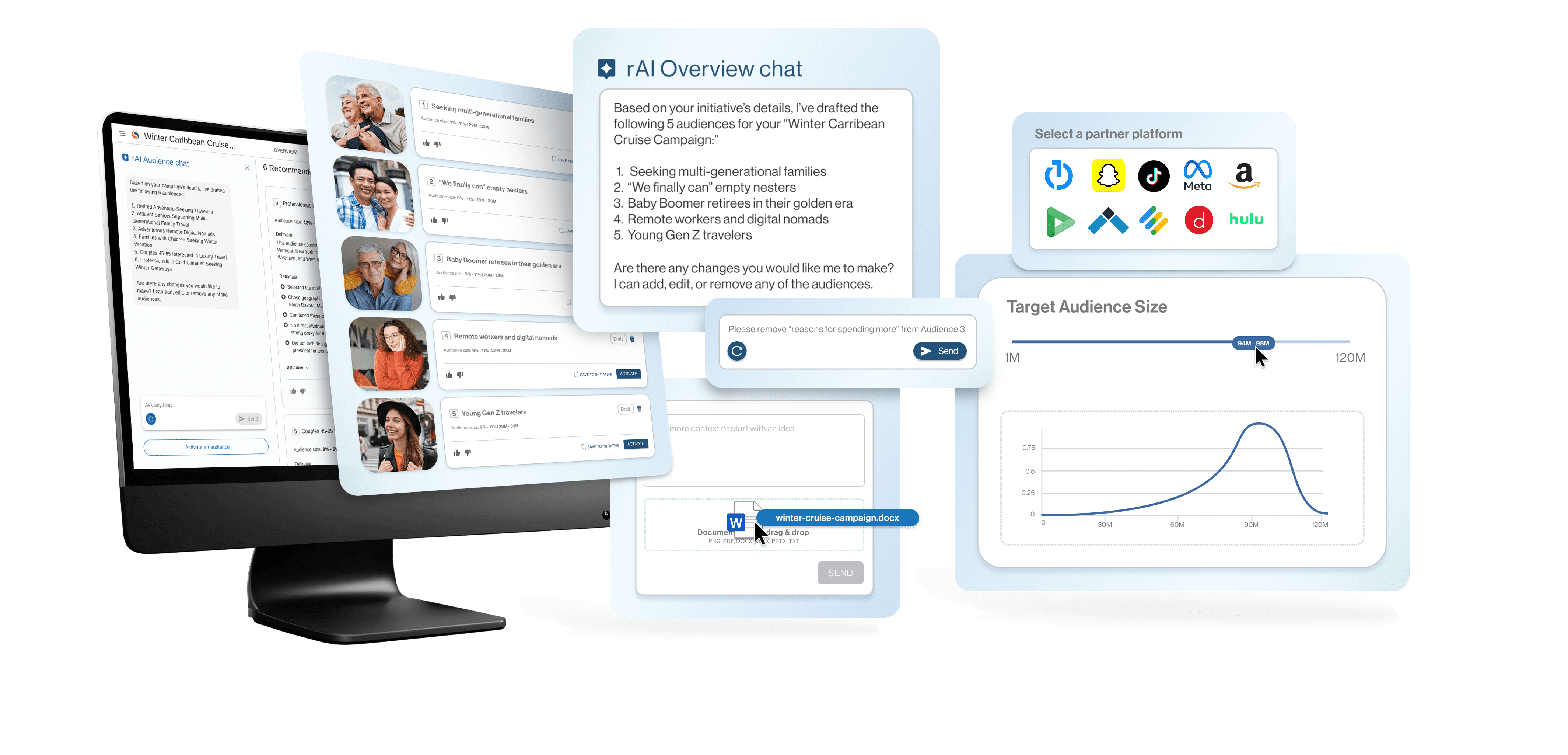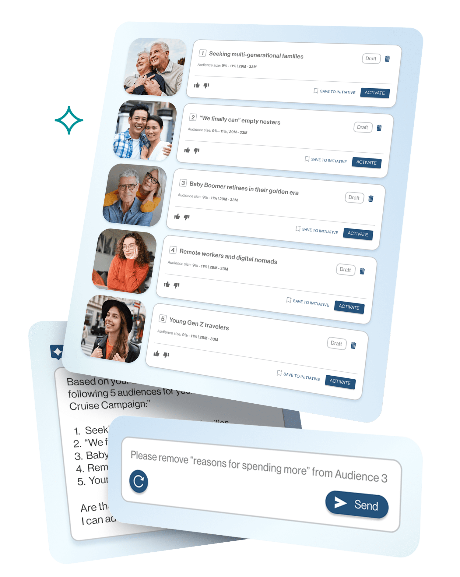 Gain more precise and differentiated audience recommendations and analyses that you can refine using your own words and launch in one click.